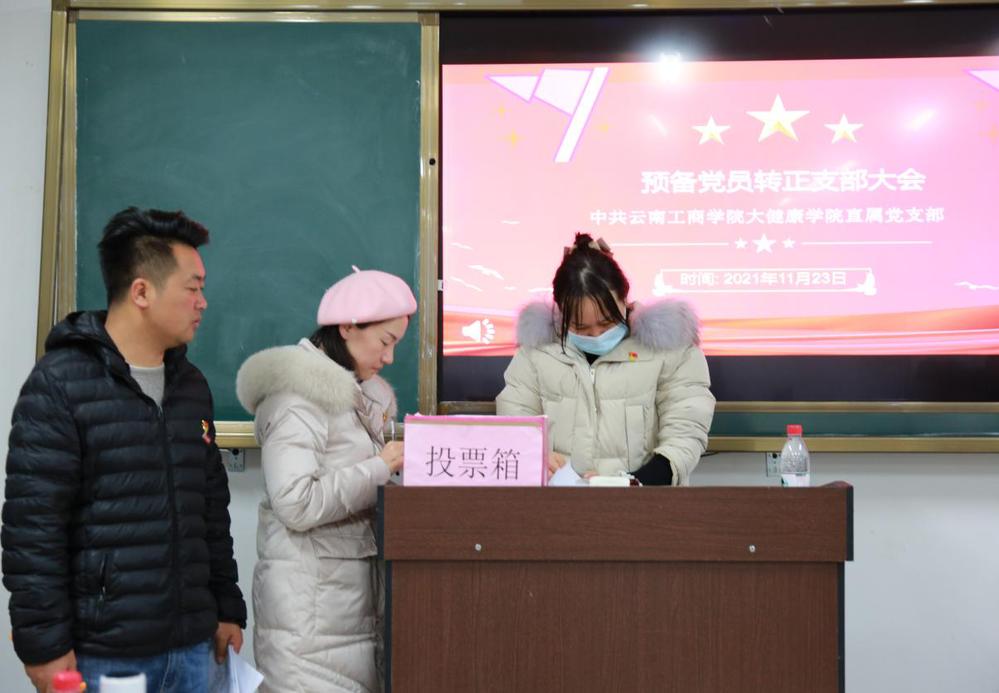 2021年11月23日晚上19:00,中共云南工商学院大健康学院直属党支部在至善楼223教室召开11月的支部大会。此次支部大会在支部书记郭永洪的统筹安排下,讨论了陈雨嫣等26名同志由发展对象转为中共预备党员的相关事宜,以及邵韵雯等14名同志由中共预备党员转为中共党员的相关事宜。