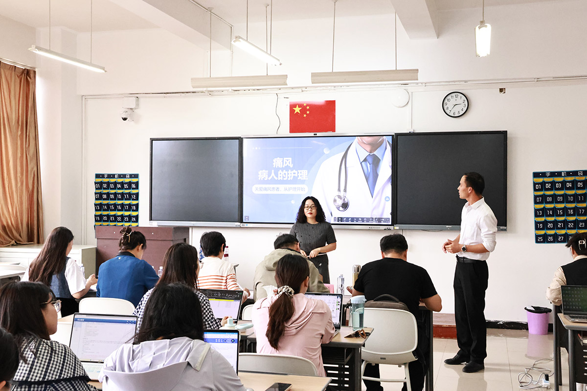 竞赛现场,参赛教师们各展所长,上演了一场场精彩绝伦的教学盛宴。他们立足大健康学科特色,将新课标理念深度融入教学实践,创新教学形式,精心雕琢每一个教学环节。此次竞赛构建了“教学设计(20%)、现场授课(75%)、教学反思(5%)” 的三维评价体系,着重考察课程思政融合、教学创新设计、信息化技术应用等核心能力。赛场上,虚拟仿真实验让抽象知识具象化,临床案例导入激发学生探索欲,BOPPPPS 混合式教学点燃课堂互动热情,多元教学手段的巧妙运用,实现了知识讲解与能力培养的同频共振。例如,部分教师结合当下大健康领域热点问题,引导学生开展小组探究,既提升了学生的实践能力,又培养了其职业素养。