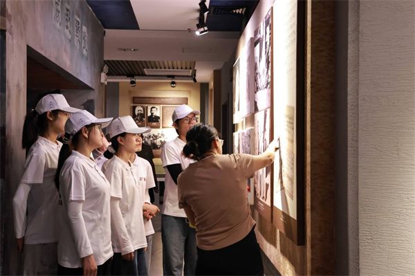 队员们在纪念馆内认真聆听讲解,透过一张张泛黄的老照片、一件件承载历史的老物件,详细了解南洋华侨机工在抗战时期的英勇事迹。当年,在怒西沦陷、云南危急的关头,以华侨机工为主体的车队星夜兼程,将部队运往惠通桥东岸阵地,在千钧一发之际挽救了抗战大局,他们的壮举让队员们深受震撼。在参观过程中,队员们驻足在记载着华侨机工们冒着枪林弹雨运送物资、坚守滇缅公路等事迹的展陈前,深切感悟到他们为国家和民族挺身而出的担当与奉献。大家不时交流感受,纷纷表示被华侨机工们舍小家为大家的爱国情怀所打动,更加懂得了如今的和平生活来之不易。实践队员们在红色历史中汲取了精神力量,进一步坚定了理想信念,也激励着他们将这份爱国热情转化为服务社会、奉献他人的实际行动,用青春力量传承红色基因。