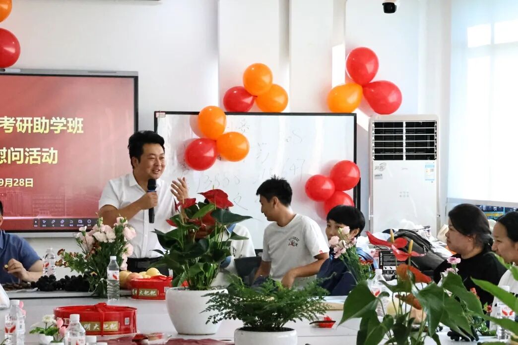 党委书记李勇辉在发言中强调,考研不仅是学业上的冲刺,更是人生中难得的成长机遇。他鼓励同学们珍惜宝贵的备考时光,充分利用学校提供的各类考研平台与资源,争分夺秒、全力以赴。“学校与学院将全力为大家做好学习保障,营造良好备考环境。希望同学们坚持到底,把握时机,用今天的汗水书写明天的辉煌。”辅导员李娅男、教师苏丽芳和张三妮与同学们展开亲切交流,详细了解大家的复习进度、报考院校及心理状态,赞扬大家不畏困难、刻苦钻研的精神,并鼓励同学们在最后阶段戒骄戒躁、稳扎稳打,以最佳状态迎接考试。