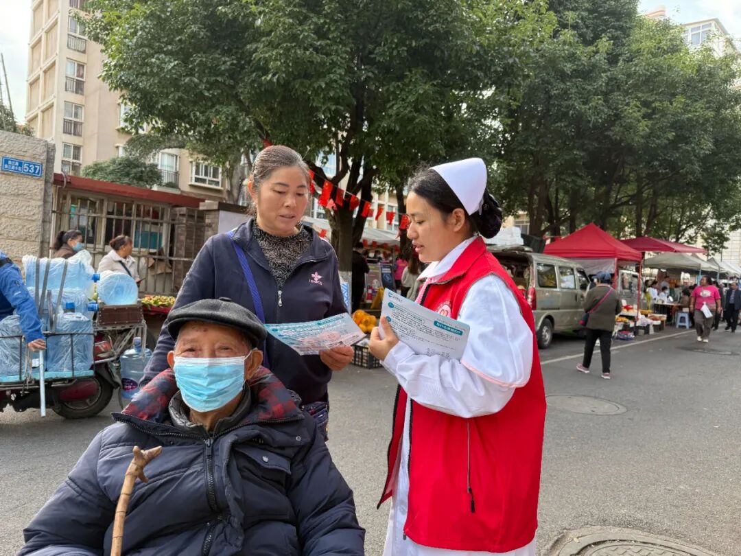永昌社区的服务凸显“专业赋能”。志愿者充分发挥大健康专业优势,在便民服务点为老人提供免费血糖检测、健康咨询、用药指导等服务,耐心记录健康数据并给出个性化建议;同时走上街道发放科普手册,用通俗语言讲解冬季养生、跌倒预防知识,将健康关怀延伸到社区每个角落。